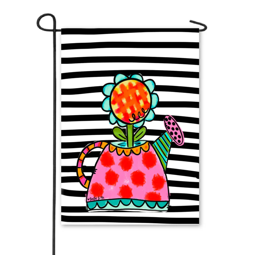 Our garden flags are of the highest quality - sewn in Mississippi and printed on both sides for equally beautiful prints from any angle. The water-resistant fabric allows the vibrant art to pop and resist fading throughout the season. Measures 18" x 12". Flag stand not included.