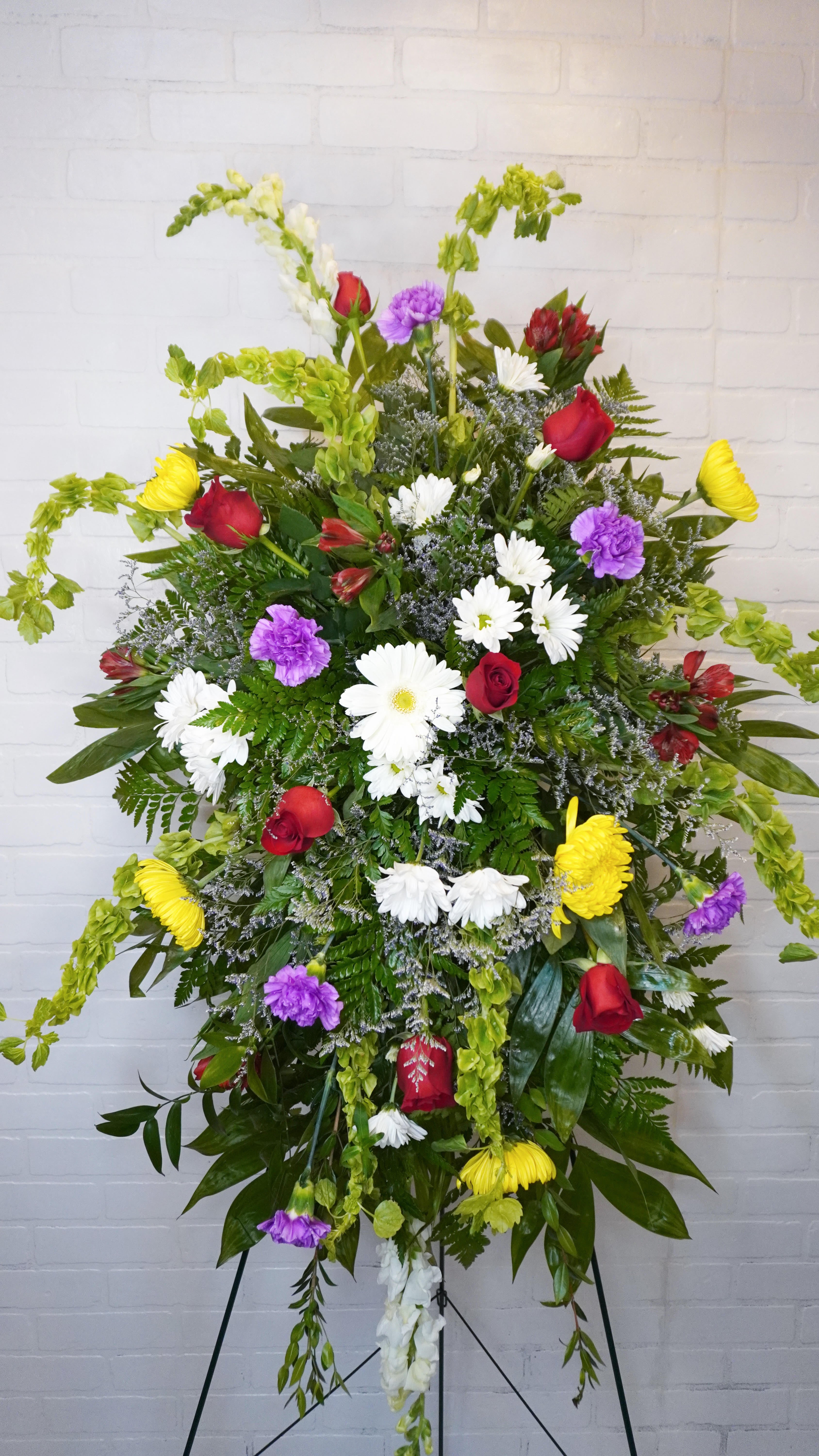 Honor your loved one with our Large Standing Spray, a beautiful and heartfelt sympathy and funeral piece. Standing tall and proud, it embodies the love and memories shared. A fitting tribute for a beloved person.