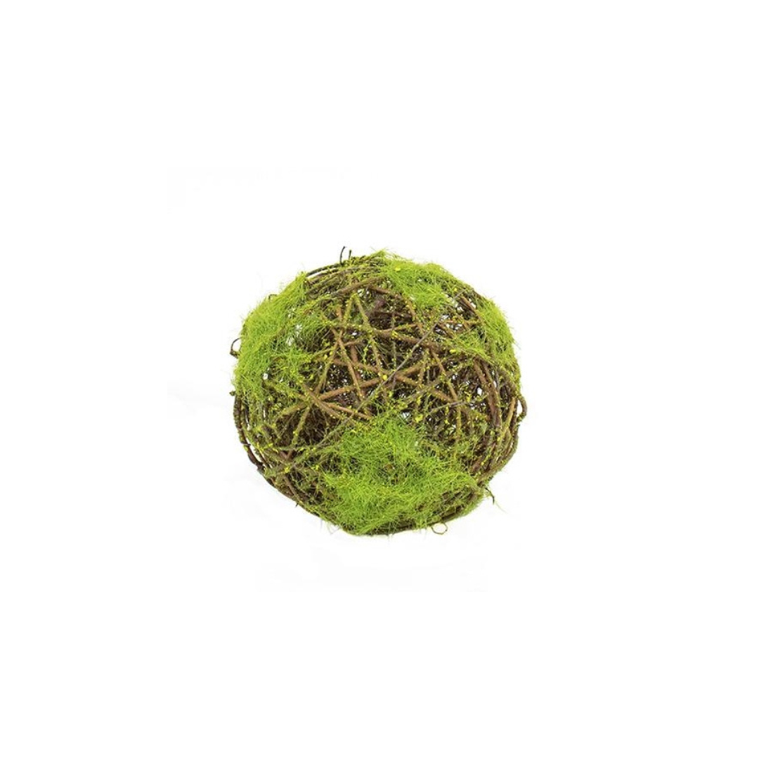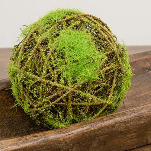 Add a hint of woodland charm with the Mossy Twig Ball. This decorative sphere is made of natural brown twig material, covered in patchy green moss. This ball is perfect filler for a bowl or tray for a Spring or Summer display. Measures 6” in diameter.