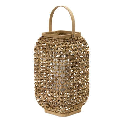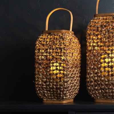 Add a touch of warmth and light to your home decor with our Small Wicker and Glass Lantern. This 16" lantern, made of natural wicker and glass, creates a serene ambiance for moments of reflection or sympathy. Illuminate your space and elevate your mood with this charming lantern.