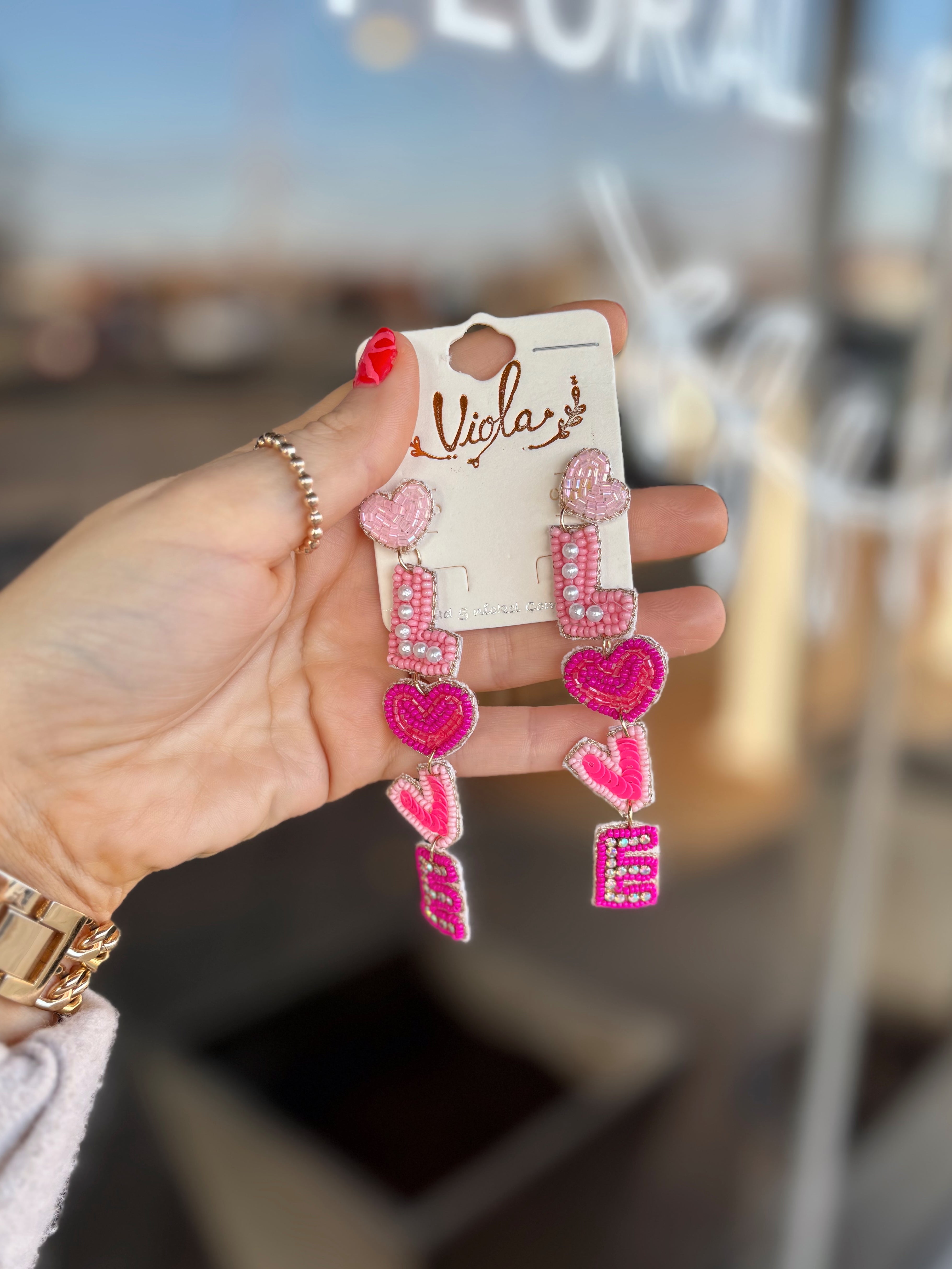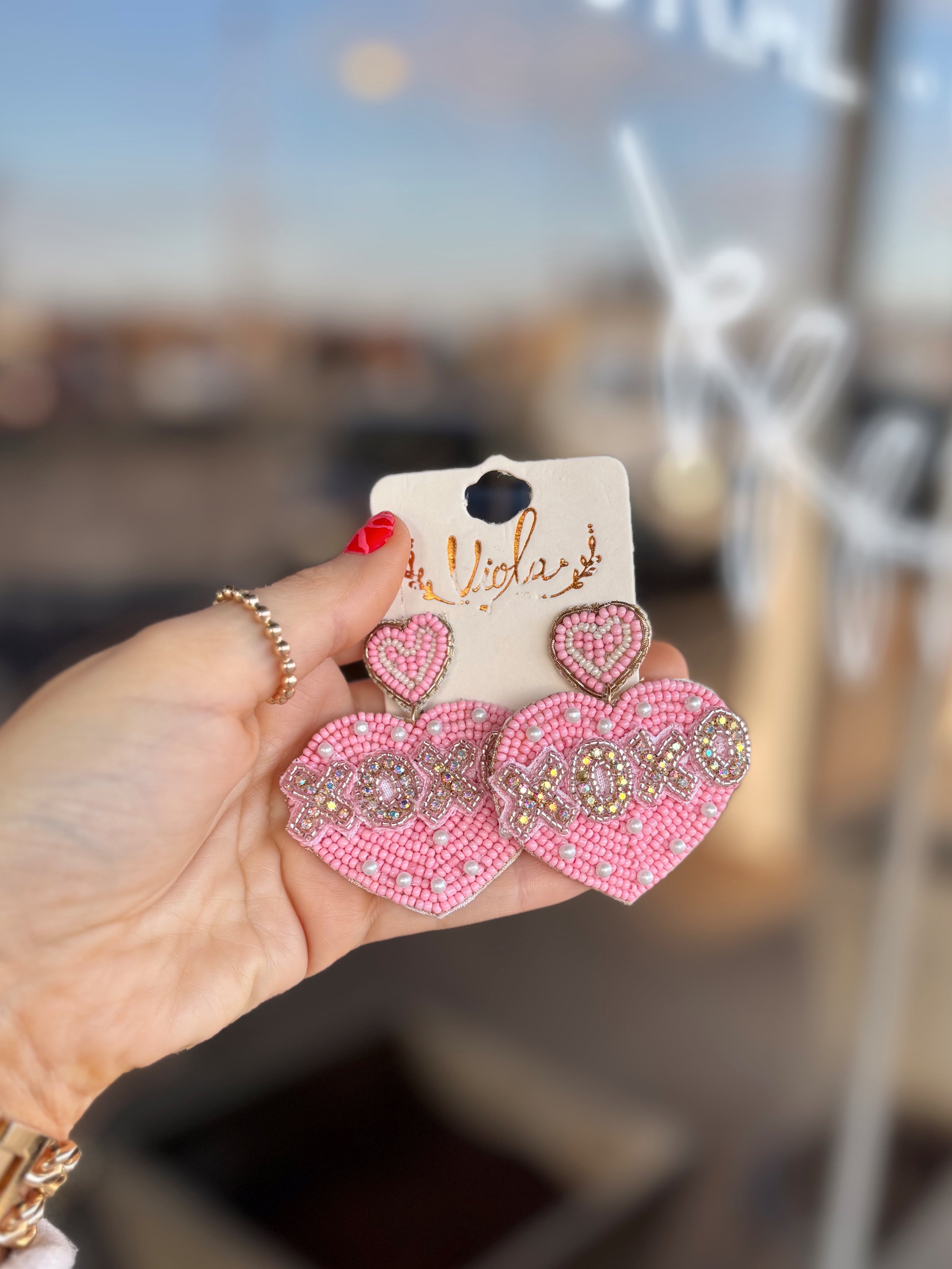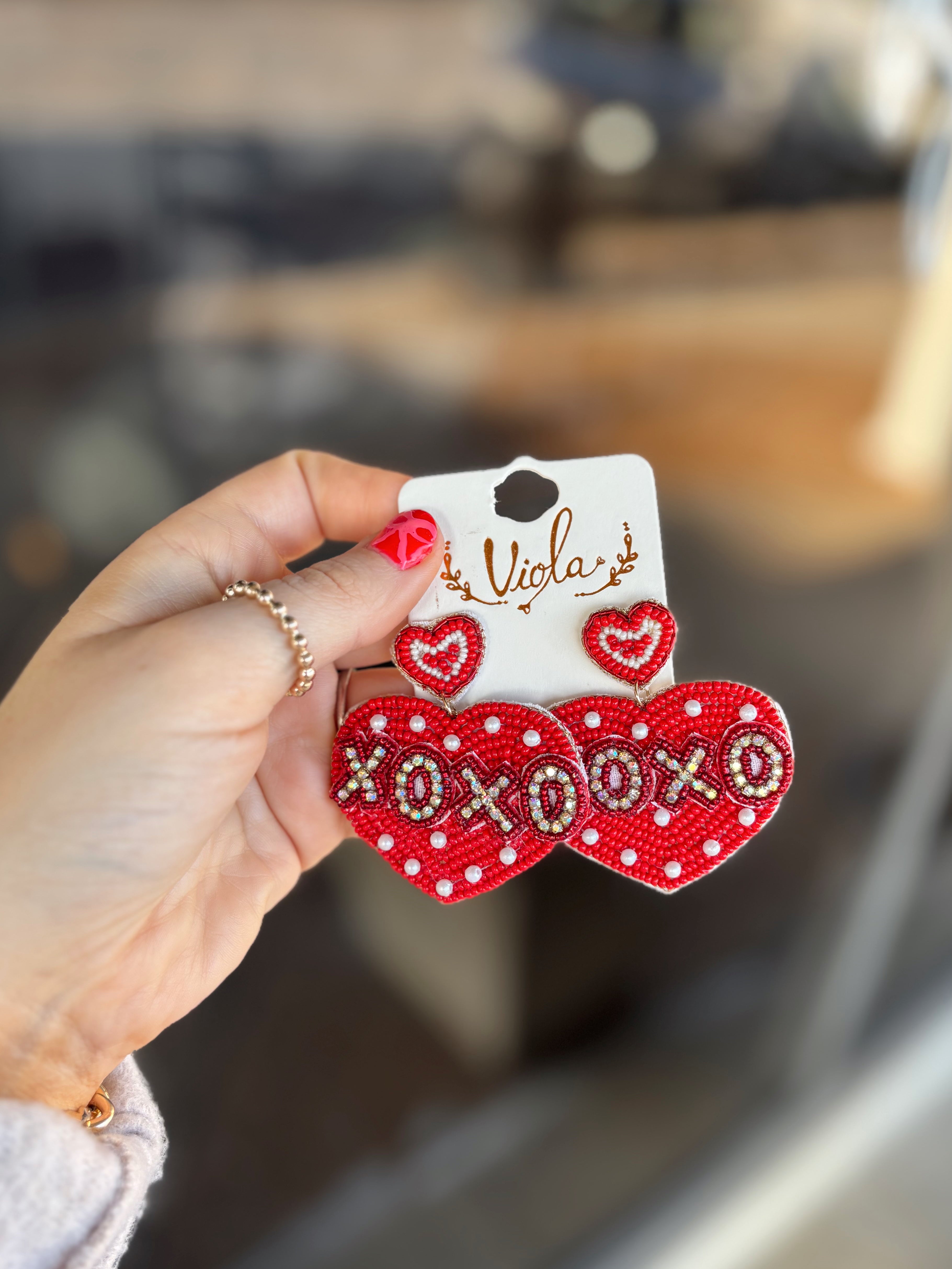 Elevate your Valentine's Day look with our sparkly, beaded earrings! These festive earrings will add a touch of romance to any outfit. Perfect for date nights or Galentine's celebrations. Make a statement and show your love with these Valentine's Day earrings.