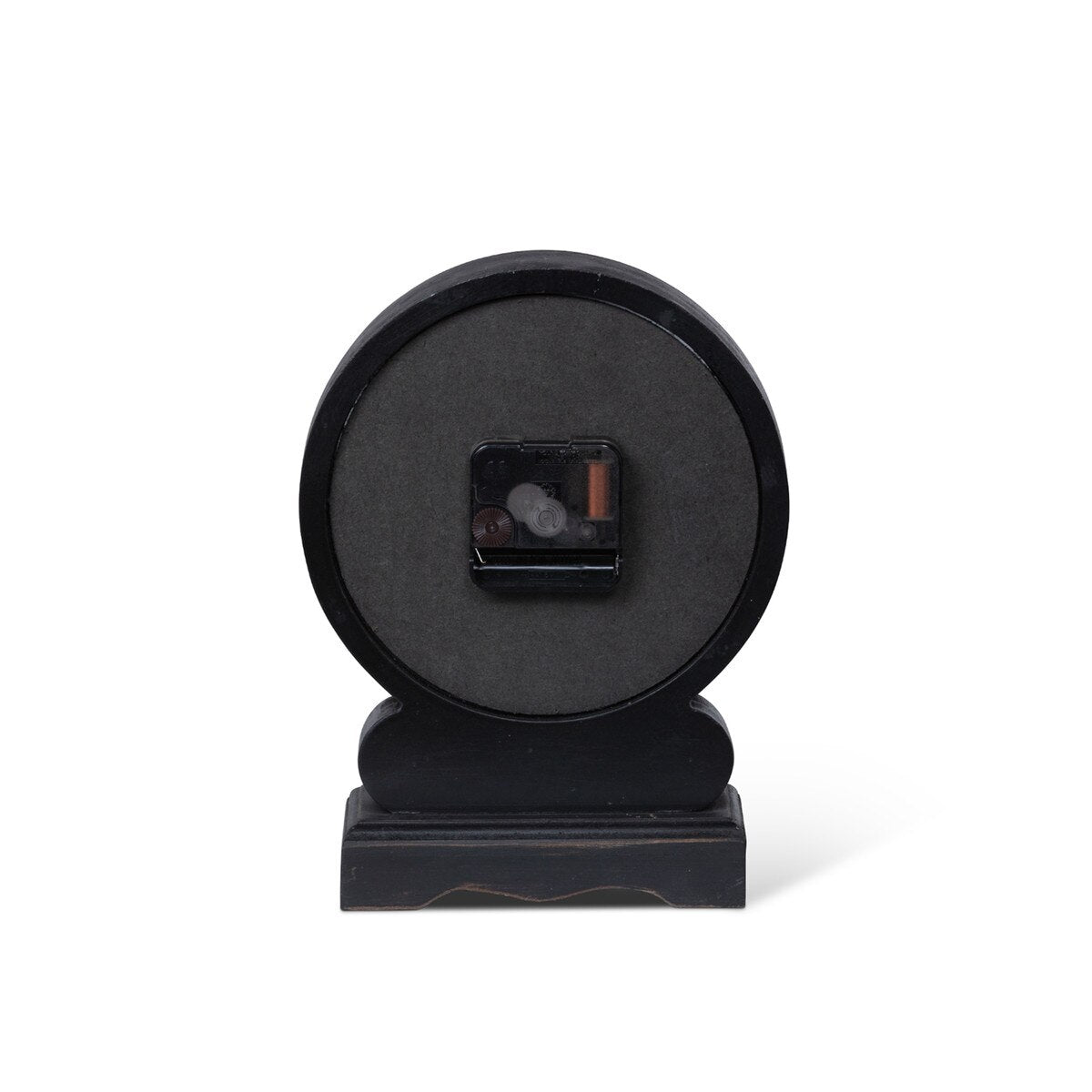 Its traditional tambour design is accented by a curved base and scrolled details. The Roman Numerals add to its vintage charm and the black hand-painted finish makes it standout among your other design accessories. Operated using a single AA battery, this wooden sculpture is an iconic décor piece.