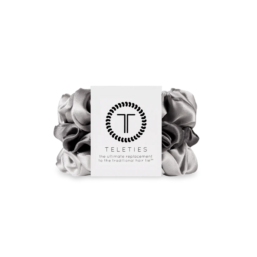 Take care of your bedtime hair and hold your hair in place with ease and softness! Silver Flames Small Silk Scrunchies in Black offer a secure grip without slipping—thanks to the innovative inner coil—wrapped in soft, natural silk.