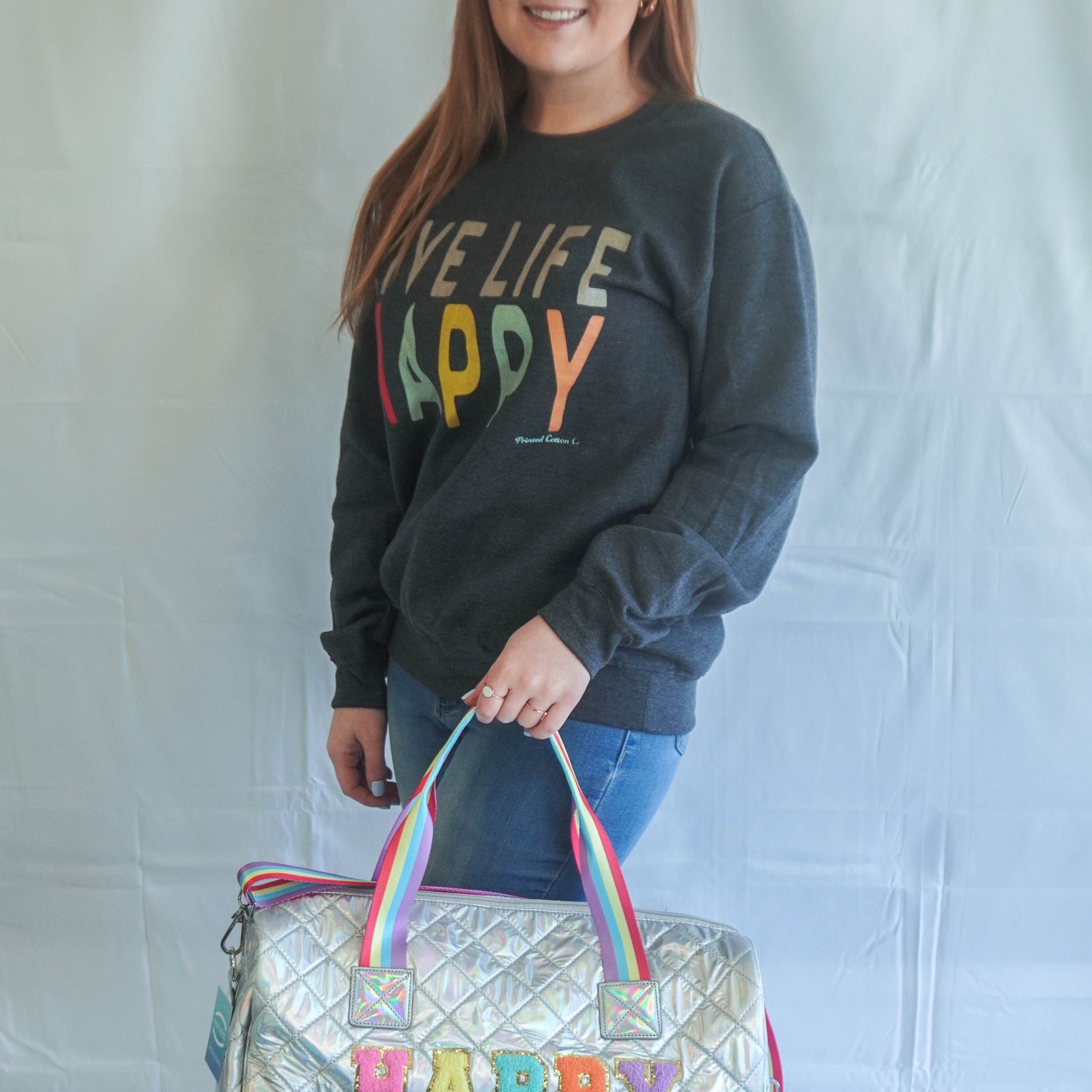 Introducing the Happy Collection! 🌈 This delightful range includes stylish bags, vibrant pens, comfy shirts, and crew necks. This collection is perfect for gifting to someone special or treating yourself. Add a dash of happy to your life with these cheerful items. Embrace the joy and spread the happiness with the Happy Collection!✨