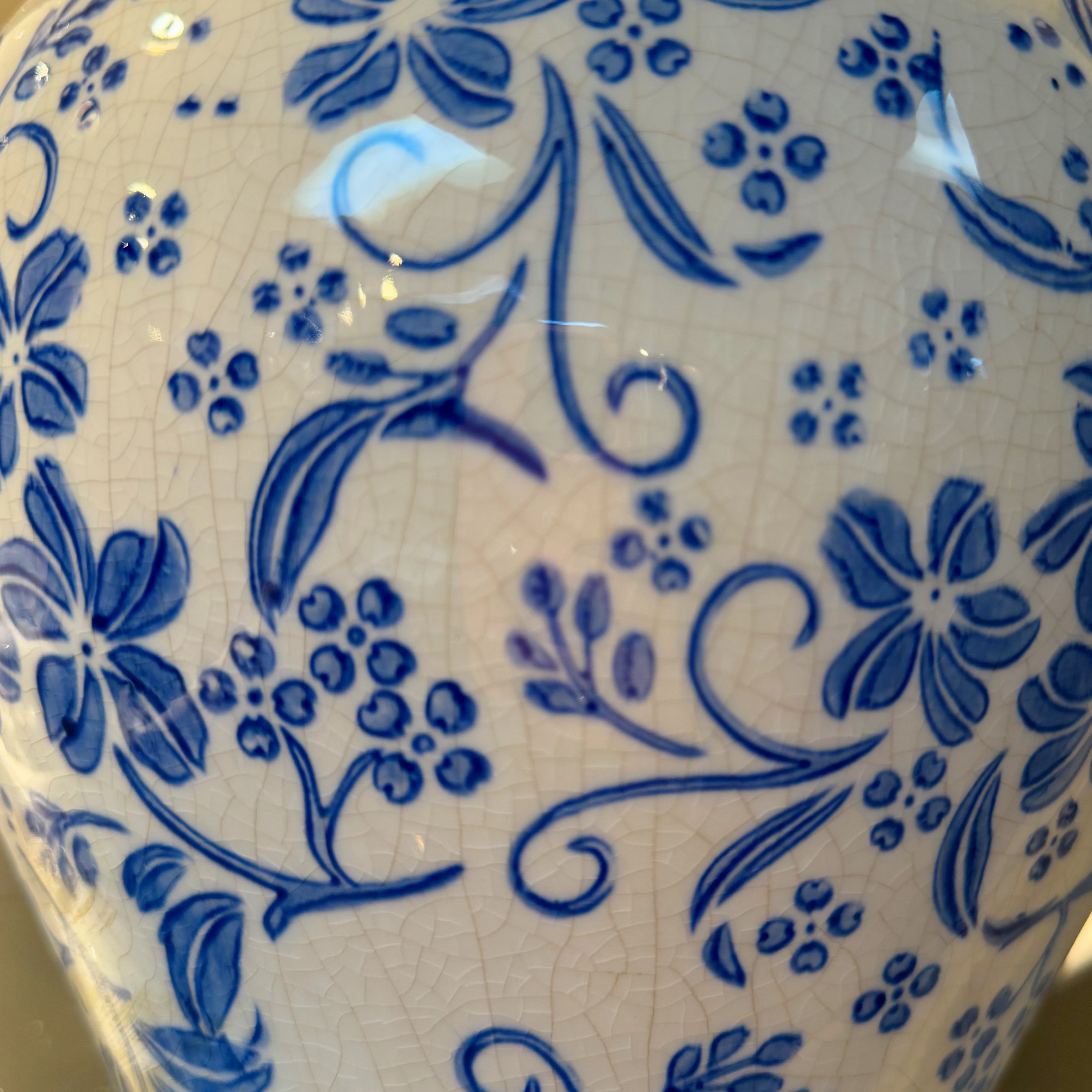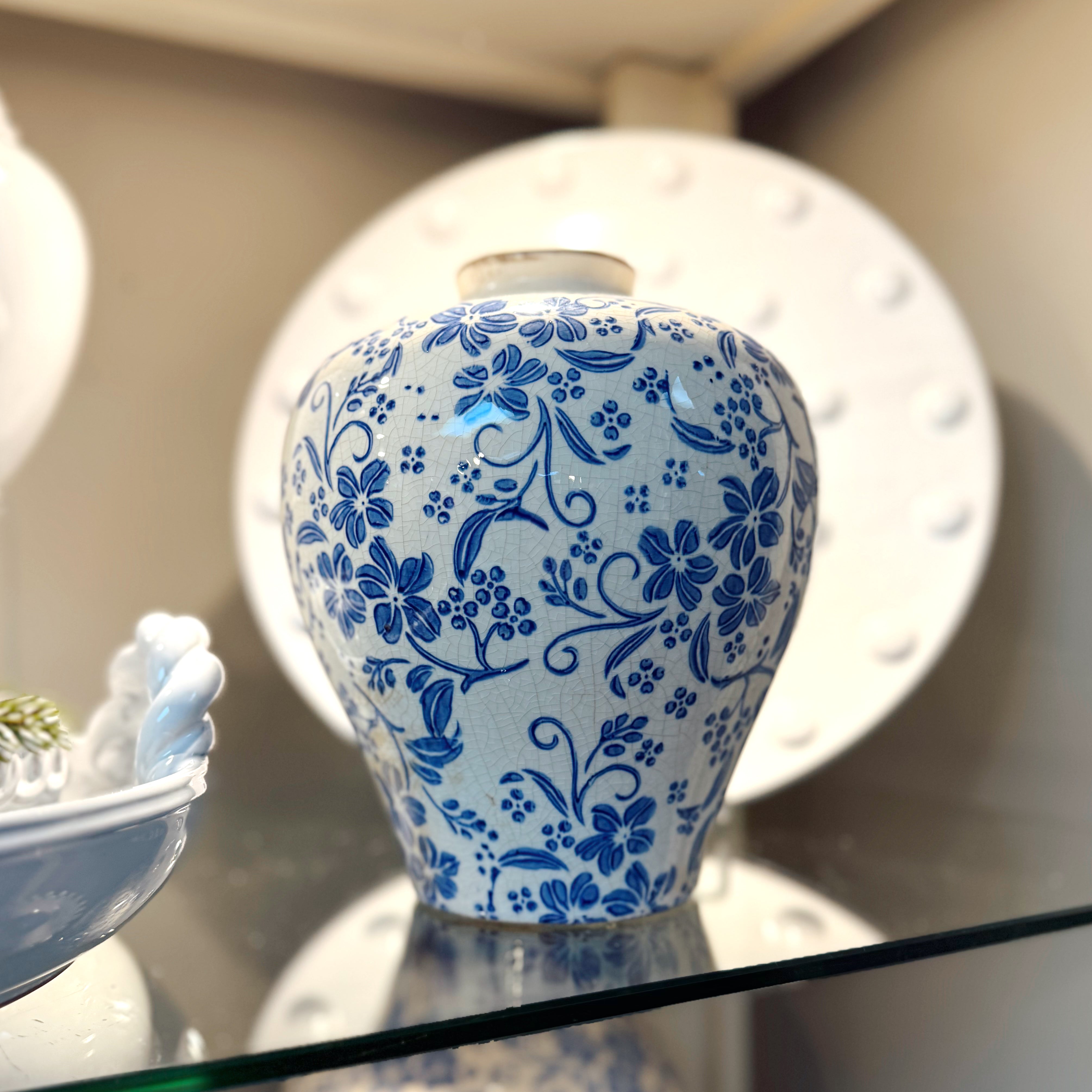 Ceramic Vintage Blue Ivy Print Medium Vase