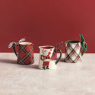 Stoneware pitcher style bud vase features hand-painted rim and handle.