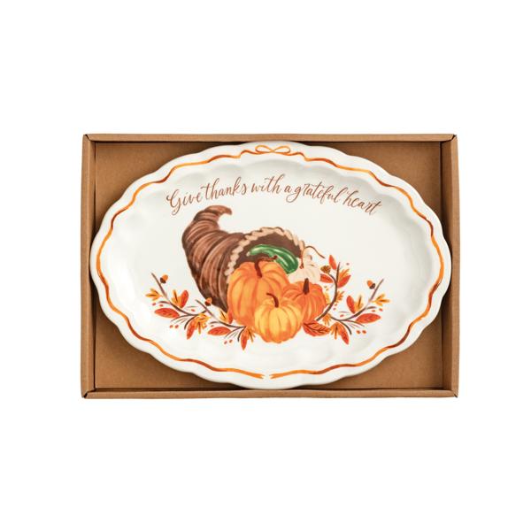 Grateful Heart Sentiment Plate is a beautifully crafted ceramic dish that adds a touch of elegance to any setting. Featuring a hand-painted scallop edge, this versatile piece is perfect for serving appetizers, desserts, or as a decorative accent in your home. Measuring approximately 6" x 10", it is made from high-quality dolomite, ensuring durability and a smooth finish. The heartfelt sentiment inscribed on the plate makes it an ideal gift for loved ones or a charming addition to your own collection. Its timeless design complements any decor style, making it a must-have for those who appreciate both beauty and functionality.
