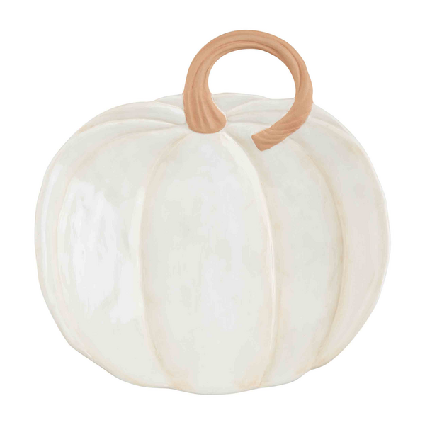 Friendsgiving celebrations with our White Pumpkin Bowl. Crafted from high-quality glazed terracotta, this beautiful bowl boasts a unique pumpkin shape and a stunning white coloring. Measuring 13" x 12 3/4" with a charming 4 1/4" twisted stem detail at the top, it exudes elegance and style. Not only is it visually appealing, but it is also practical, being dishwasher safe for easy cleaning. Embrace gratitude and elevate your holiday table setting with our White Pumpkin Bowl.