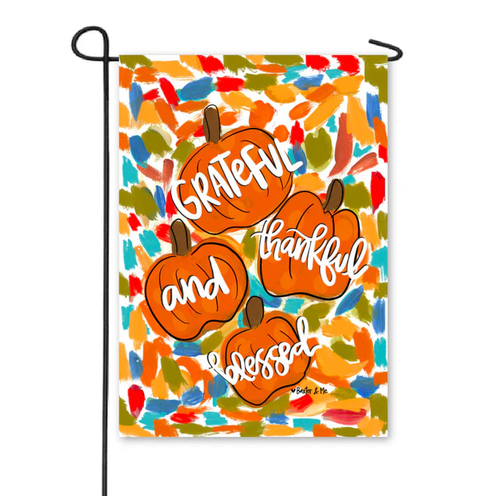 Colorful Grateful, Thankful, & Blessed Garden Flag