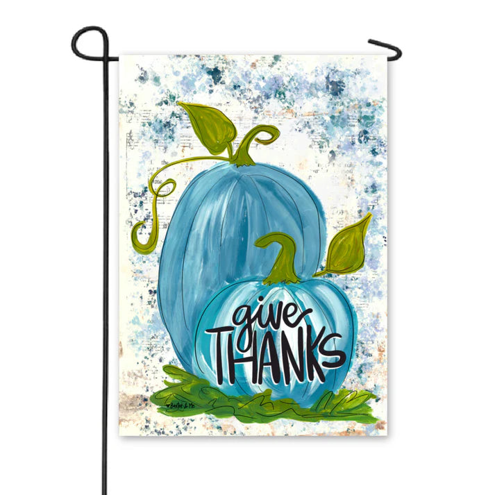 Show your gratitude with our Give Thanks Blue Pumpkin Garden Flag! Display this vibrant flag in your garden to spread a message of thankfulness and appreciation. The bright blue pumpkin design will add a pop of color to your outdoor space. Harvest season just got even more special!