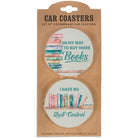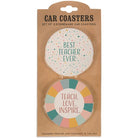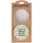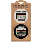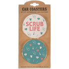 Our round car coasters will fit most cup holders and are made from absorbent stoneware. Will work for hot and cold beverages and absorb spills and condensation. These are designed, printed and packaged in the USA. This set comes in a clear acetate peggable card package. Coaster measures 2 3/4" in diameter. These make great gifts!