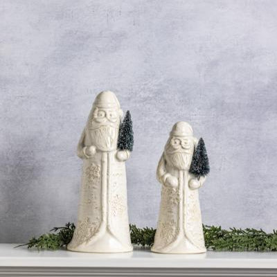 Delight in the festive charm of our White Christmas Santa Sitters, a perfect addition to your holiday décor. Crafted from high-quality milk glazed stoneware, this enchanting Santa figurine showcases exquisite textured relief and in-mold details, bringing a touch of elegance to any setting. The intricate design features a whimsical bottle brush Christmas tree, adding a playful yet sophisticated element to your seasonal display. These compact yet striking pieces are ideal for tabletops, mantels, or shelves, effortlessly enhancing your festive ambiance. Embrace the spirit of the season with this timeless decorative accent that captures the joy and magic of Christmas.