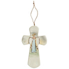 The cross is designed with a rustic twine hanger, allowing for easy display on walls or doors. Additionally, it includes sawtooth hardware for secure mounting. Measuring 6 1/2" x 4 1/4", this compact yet impactful decoration is perfect for adding a touch of spiritual elegance to any room. Ideal for holiday decor or as a thoughtful gift, this nativity cross is a timeless addition to your home.