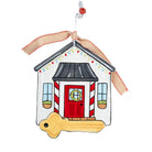In search of the perfect housewarming gift this Christmas season? Our New Home Key Flat Ornament is the perfect way to celebrate a new home! This ornament will be a special keepsake for all the years to come as it shows a beautiful house, decorated for the holidays accompanied by a key that is perfect for personalizing with a family name or address to commemorate your home sweet home. This hand-painted design is a Glory Haus original that makes memories last and be filled with all the nostalgia your unique lives call for! Hang this treasured memento year after year to commemorate new homes, homes of the past, and memories to come!