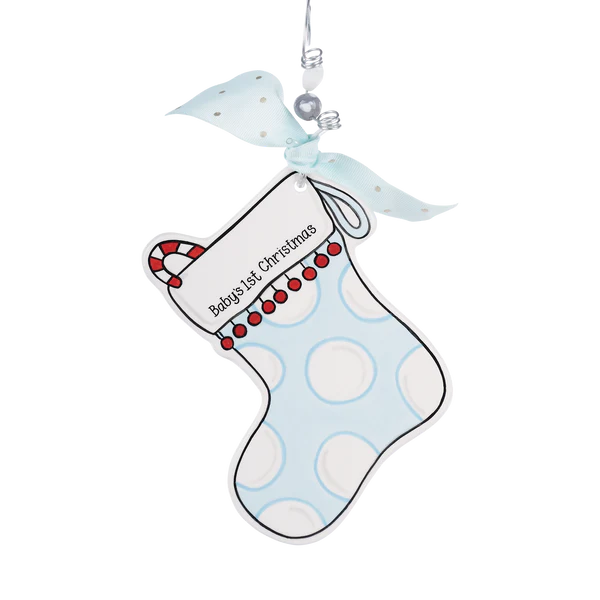 Add a dash of sweetness to your holiday decor with our Peppermint Boy Stocking Flat Ornament! Featuring a handsome blue striped design, this sweet ornament brings charm to any Christmas tree. Perfect to gift to those with a newborn or to purchase for your own child, it's sure to evoke memories of a baby boy's first Christmas.