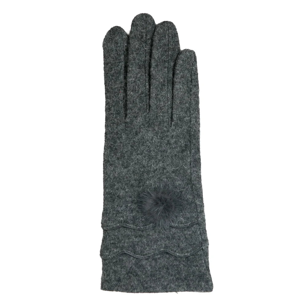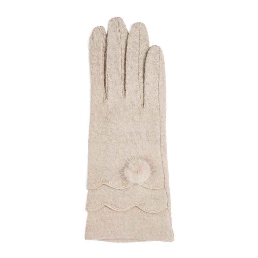 Stay warm with this one size pom pom winter glove! The Cassidy gloves have embroidered thread on index finger and thumb for touch screen capabilities while staying warm. The scallop edges and faux fur pom pom glove with a ruana, wrap or poncho will look chic and fun.