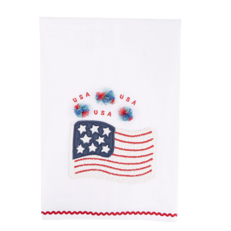 Show off your patriotic pride with our Flag USA Tea Towel! Made with high-quality material, this towel features an eye-catching design of the American flag. Perfect for adding a touch of Americana to your kitchen decor or for displaying during special occasions. Show your love for the red, white, and blue with this must-have accessory!