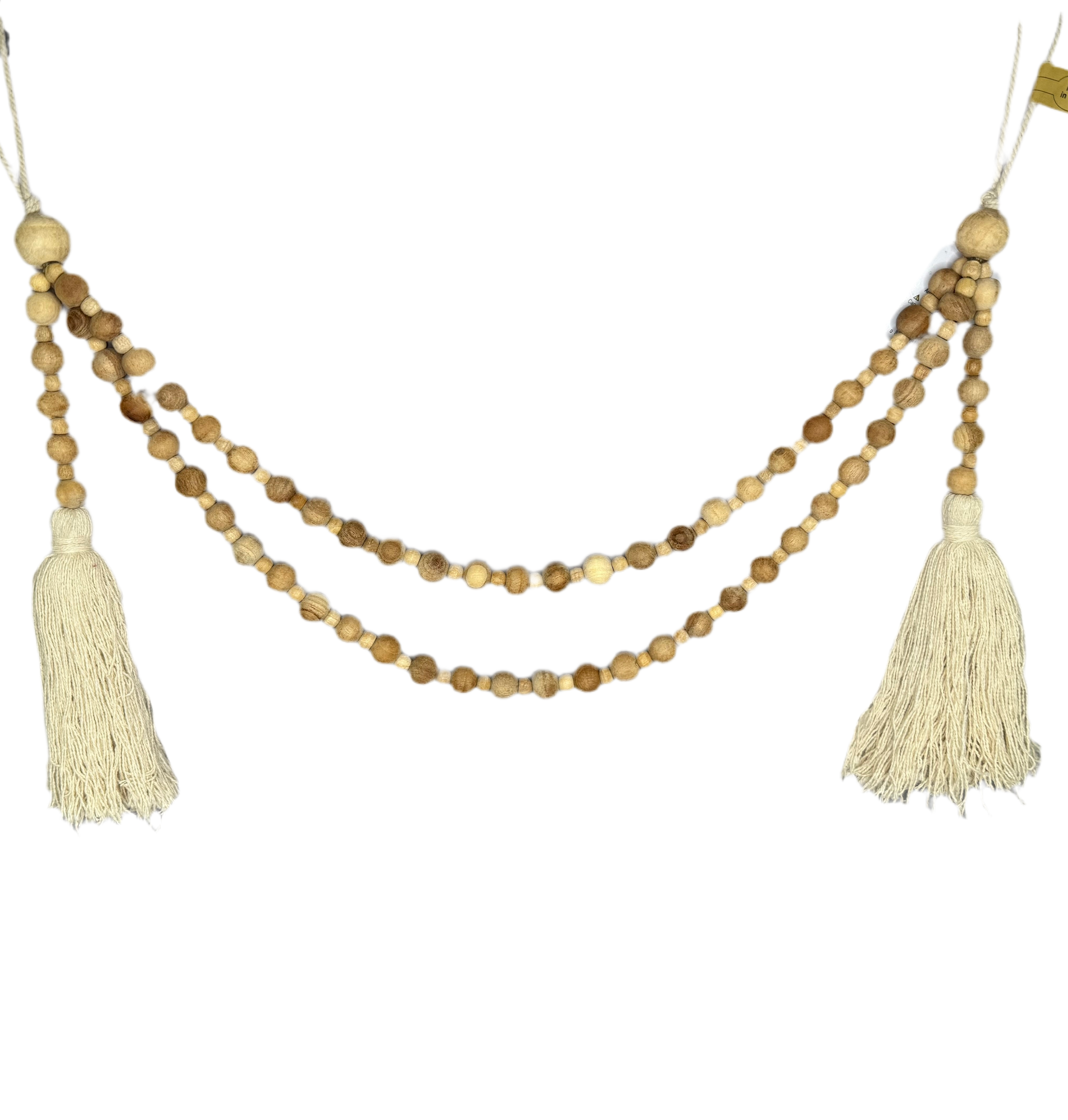 This Small Natural Beaded Garland features beautifully double-draped beads that add texture and warmth to any space. Finished with a cream tassel on each end, it brings a subtle, elegant touch that complements a variety of decor styles. Perfect for enhancing shelves, mantels, or tables, this garland effortlessly blends rustic charm with refined detail to elevate your home’s ambiance.